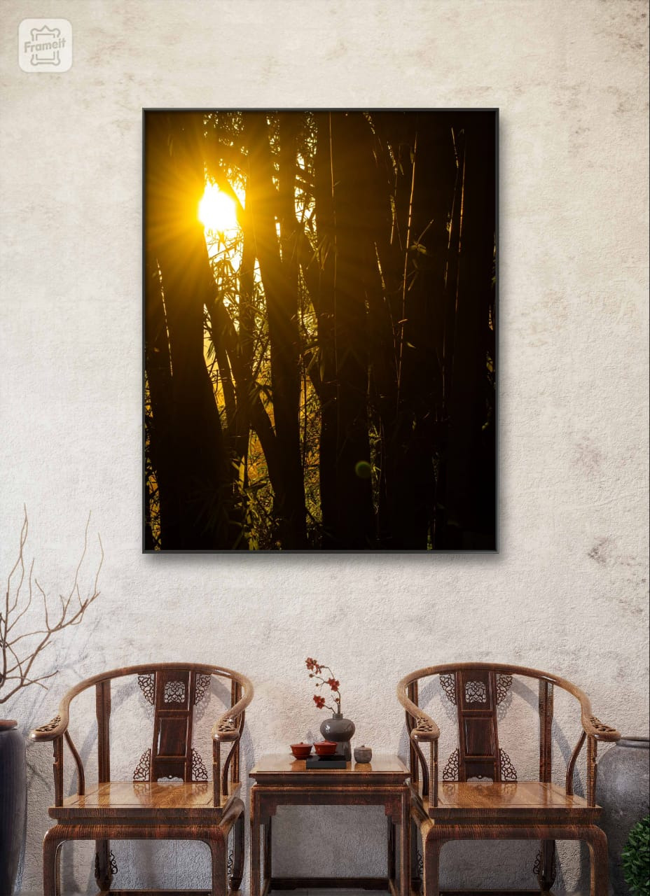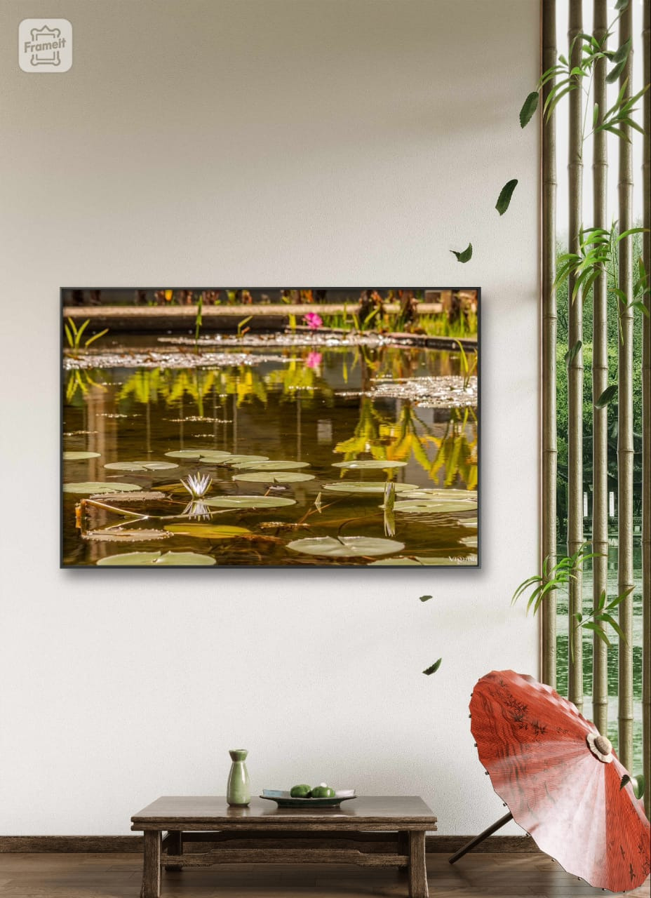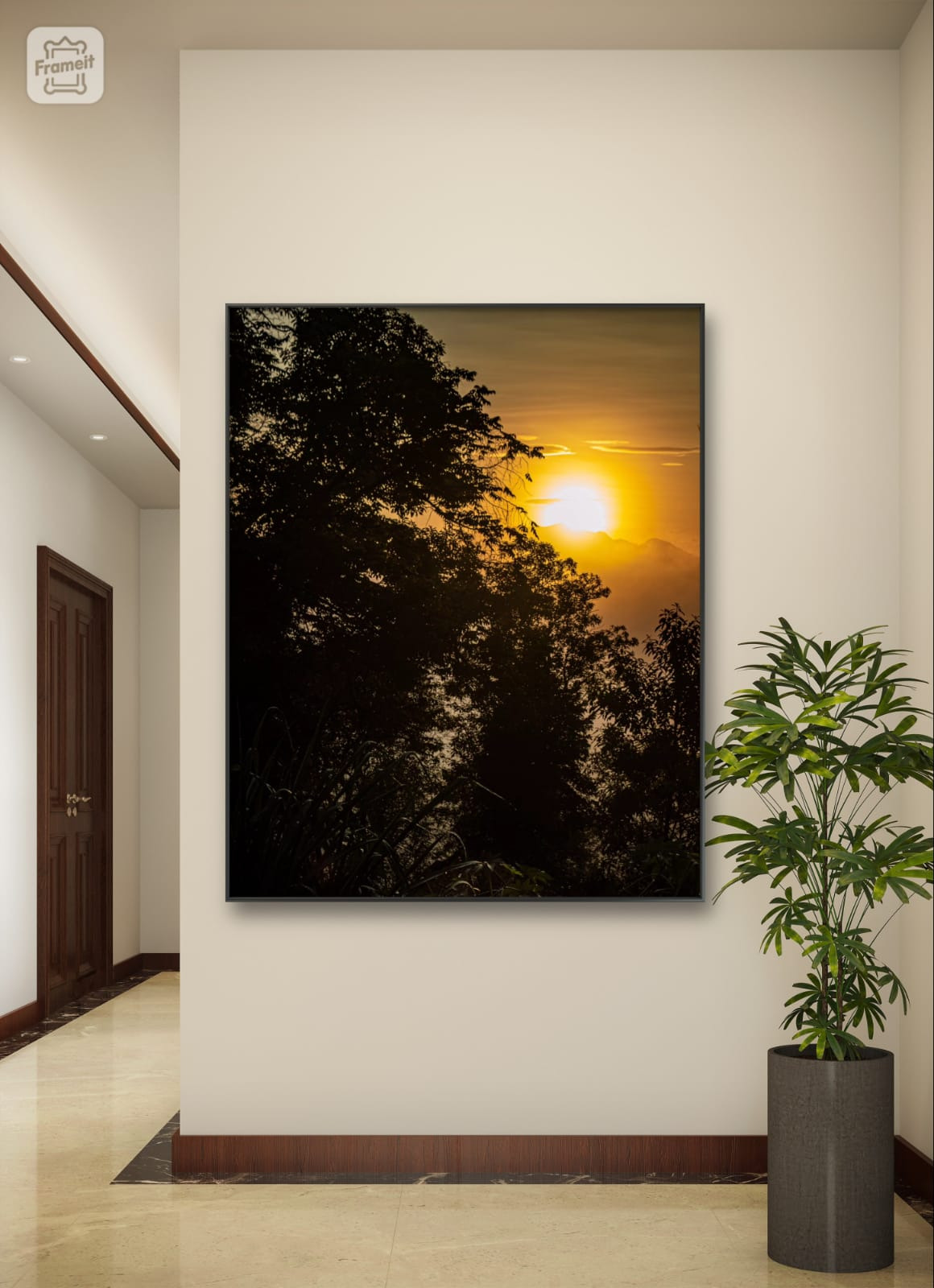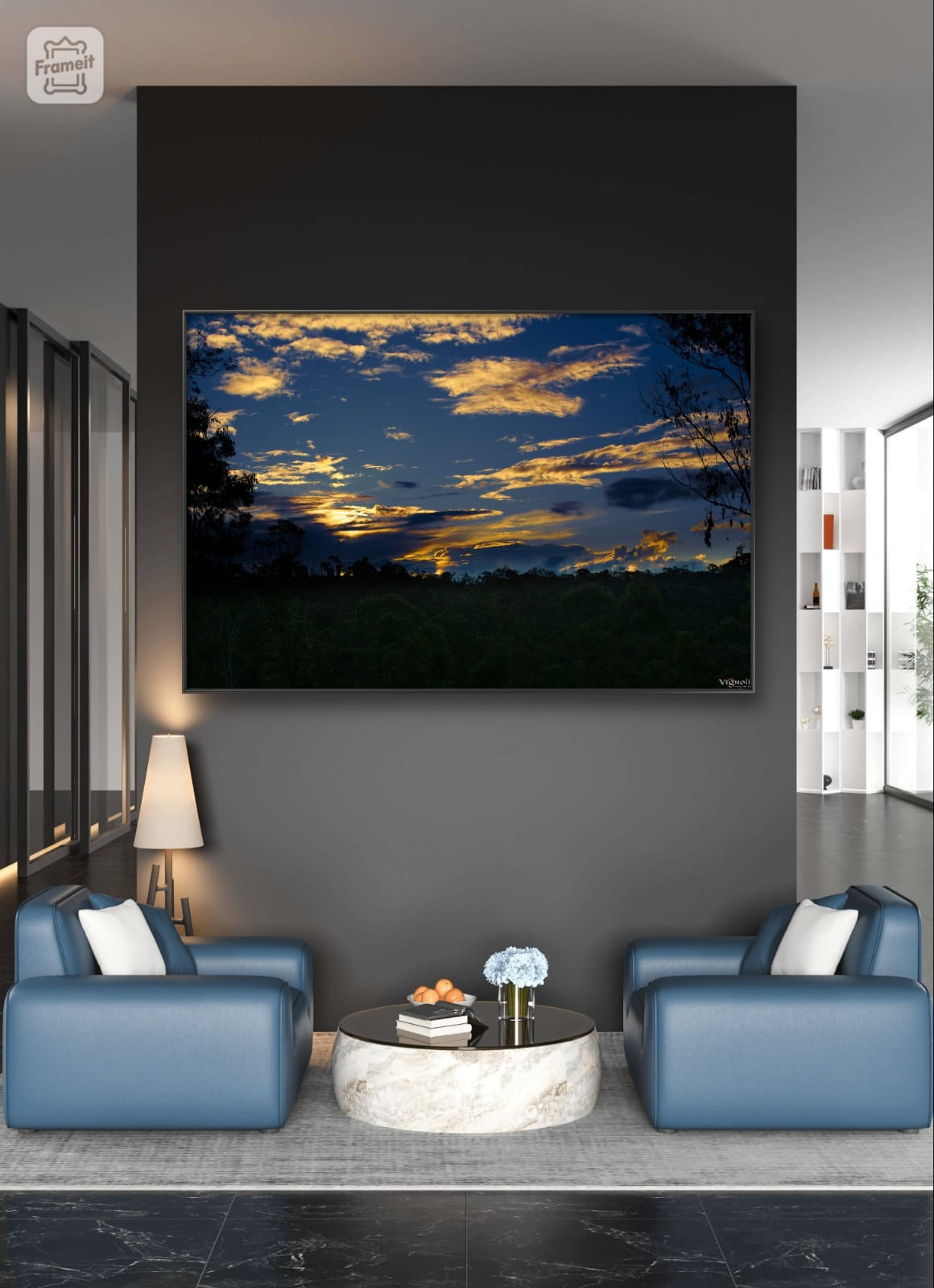 Impressão no Vidro: impressão direta no vidro com a mesma tecnologia ultra-violeta utilizada na madeira, trazendo uma leveza adicional à imagem com uma moldura que traz um aspecto 3D à obra.